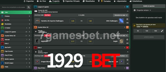 O 1929 Bet oferece uma grande seleção de opções de apostas em e-sports com probabilidades competitivas